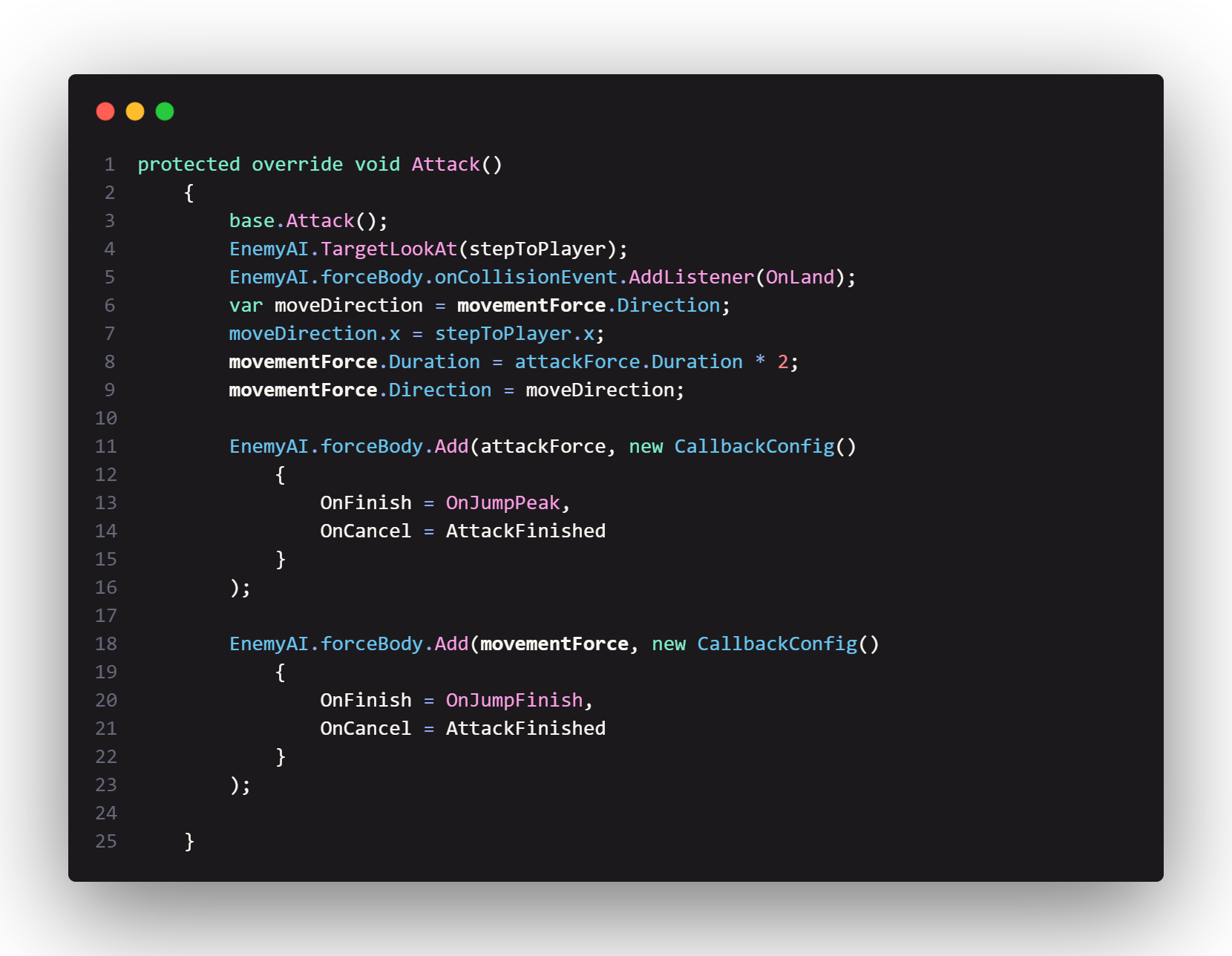 I personally struggled with learning their forcesystem, it was alot of back and forth on how certain variables were supposed to work, but one of the technical directors Berend Weij was really helpful with helping me understand the way it worked. Air Enemy was als a little bit difficult to refactor to EnemyAI, but once we figured out how the ForceSystem worked it wasnt as difficult